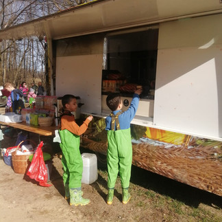 Kromě samotného sledování výlovu bylo pro děti připraveno i občerstvení, kde si mohly dát teplý čaj, limonádu a slané i sladké dobroty. U ohně si mohly opéct buřty a zahřát se.