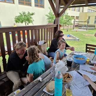 Po sportu přišla na řadu zasloužená odměna – koláčky, ovoce, grilovačka, skákání na trampolíně, tanec a spousta zábavy. My z nadačního fondu jsme přivezli malování na obličej a zájem byl obrovský. Z dětí se rázem stávali kočičky, motýlci, Spidermani i klauni – fantazii se meze nekladly.